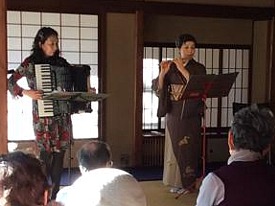 | アコーディオン演奏家の坂本光世としの笛演奏家の鈴木好子による女性Duo。世界初!の珍しい組合せですが、笛と蛇腹の息遣いは鑑賞も楽しく、繊細な演奏は各種イベントでも好評です。 抒情歌・日本歌曲・シャンソンから、ロシアやモンゴルの民謡まで、癒しの音色を身近に感じていただける演奏会を各地で開催しています。 また、コンサートにおいでいただいた皆さんと一緒に歌う活動も取り入れ、一体感のあるコンサートづくりを大切にしています。 朝日カルチャースクール、読売カルチャースクールなどでの音楽指導も行っています。 演奏予定曲:荒城の月・愛の讃歌・月の砂漠・バラ色の人生ほか みなさんで歌いましょう! |