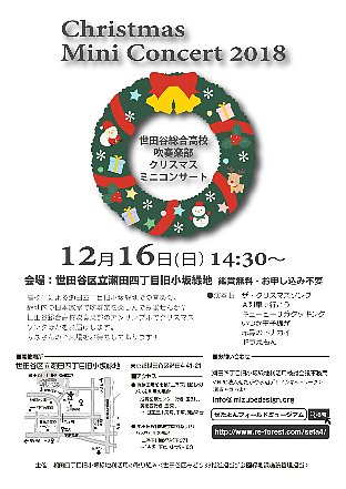 世田谷総合高校吹奏楽部のアンサンブルでクリスマス ソングほかをお届けします。