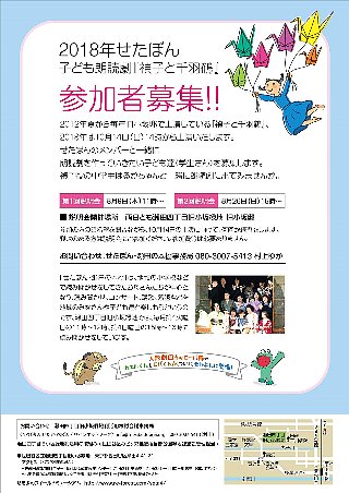 2018年 せたぼん 子ども朗読劇『禎子と千羽鶴』参加者募集!!