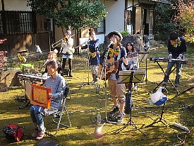 多摩川のプレイパークきぬたまあそび村から素敵な歌声が瀬田4丁目広場にやってきました。