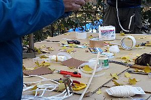 緑地の竹を使った「音具」作り