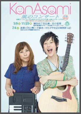 多摩川で活動する「きぬたまあそび村」のプレーリーダー Asami と Kana のボーカルユニット。バックを支えるナカマタチも子どもたちに大人気。せたよんでのコンサートは