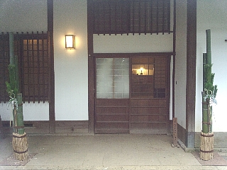 小坂邸の門松には勿論、庭園の青竹を使いました。つくばいには氷が張るくらい寒いです。 |