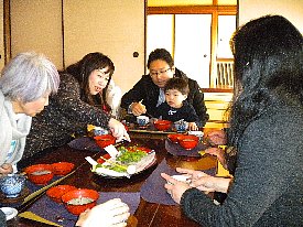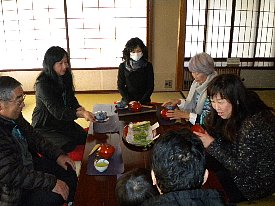 ![]() 参加者の皆様と七草粥を食べて無病息災を願う |