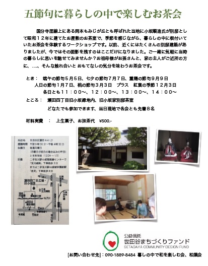そんな光景をイメージした 旧小坂邸を肌で感じて頂ける様な 家庭的なお茶会ワークショップです。